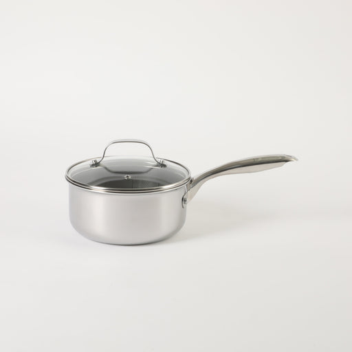 Oster Modessa 2.5qt Tri-Ply Stainless Steel Saucepan w/ Glass Lid - Etching Nonstick Interior - Long Handle - Color Sleeve