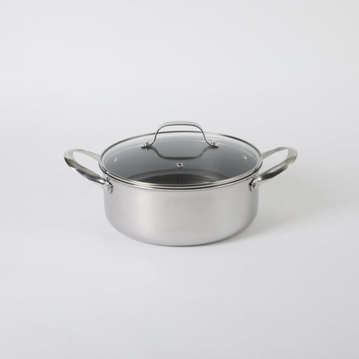 Oster Modessa 4.5qt Tri-Ply Stainless Steel Dutch Oven w/ Glass Lid - Etching Nonstick Interior - Long Handle - Color Sleeve